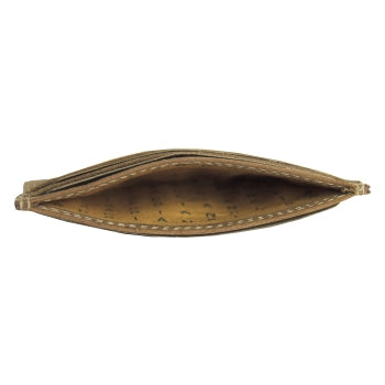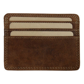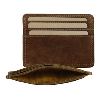 This simple card holder features an open pocket in the centre, 3 card slots on either side, for a total of 6 card slots. It measures 10cm (4") in width and 7cm (2.5") in height.
