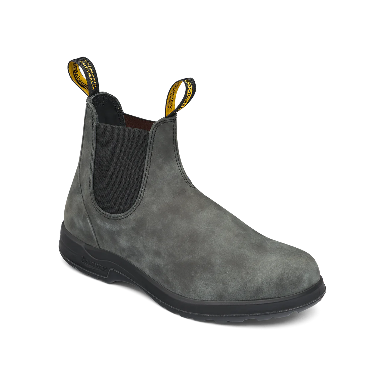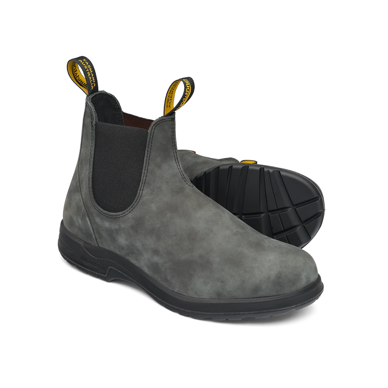 Blundstone has partnered with Vibram® to create an exclusive outsole! The All-Terrain Series is made with a Vibram® sole, the series includes the #2055 All-Terrain boot in Rustic Black. This unique feature-packed Vibram® sole takes Blundstone to the next level of enhanced slip resistance while maintaining the legendary Blundstone comfort and durability. The new tread design has a higher ratio of surface contact for increased stability and grip on uneven terrain. Two iconic brands with over 225 years of innovation and adventure between them have come together to explore advancements in technology to create a boot that perfectly blends heritage and style with rugged performance.