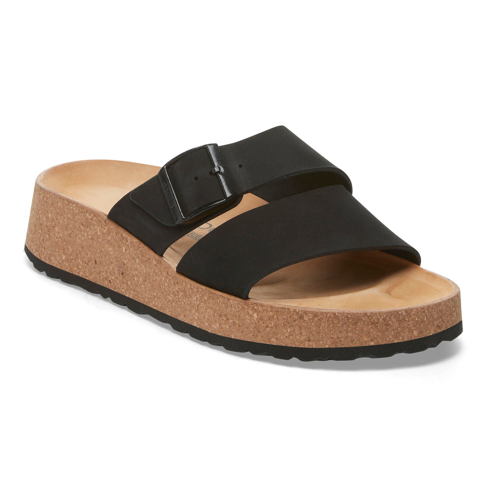 The Almina sandal from Papillio is a platform sandal with a with a slight, flared wedge heel. Its optimum stability thanks to the wide strap at the instep makes it a real hit with women who want both high fashion and comfort. Papillio presents the two-strap sandal as an exquisite version and with a trendy platform sole. The bevel results in maximum walking comfort. The exquisite footbed is fully lined with soft leather, making it exceptionally comfortable. The upper is made from high-quality aniline leather.