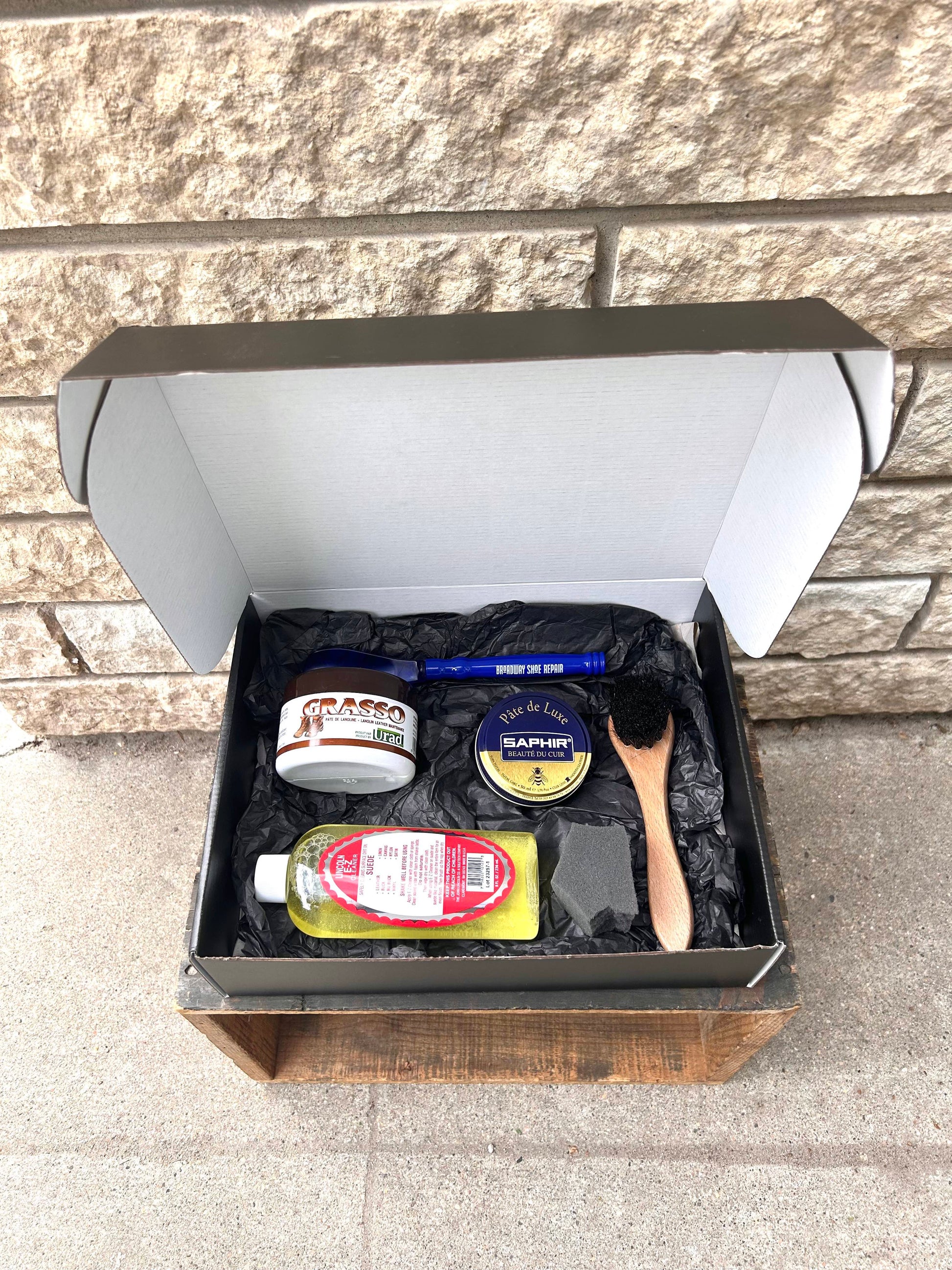 New to the online shop, Shoe Care Kits. Complete with the products you need to care for your footwear at home and step by step instructions on how to use them!