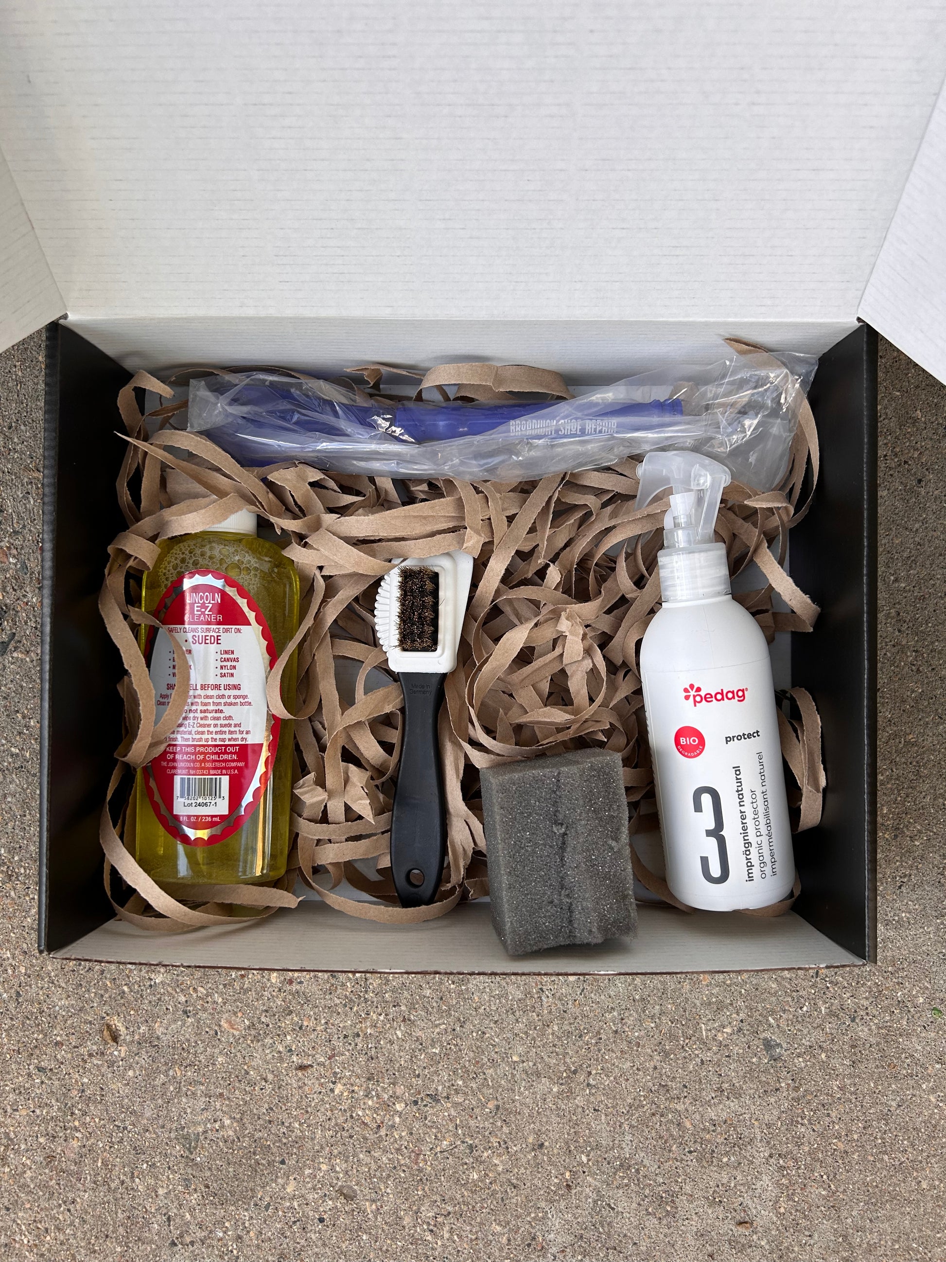 New to the online shop, Shoe Care Kits. Complete with the products you need to care for your footwear at home and step by step instructions on how to use them!